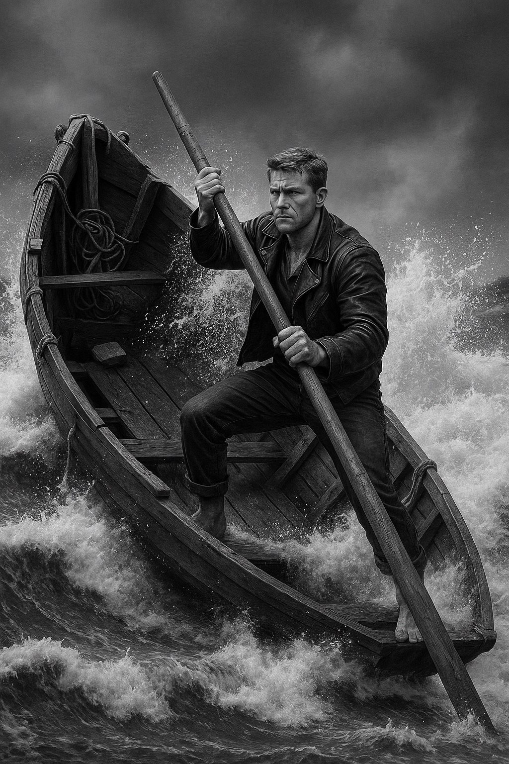 Inmitten des tosenden Meeres steht er aufrecht. Der Fährmann.Allein in der Kraft, aber nicht allein in der Aufgabe. Dieses Boot ist Symbol für unser aller Leben – manchmal auf ruhigem Wasser, manchmal im Sturm. Doch die Bewegung nach vorn, das Halten der Richtung, das Überqueren gefährlicher Passagen:Das gelingt nicht ohne Gemeinschaft. Ein Boot braucht Balance….
